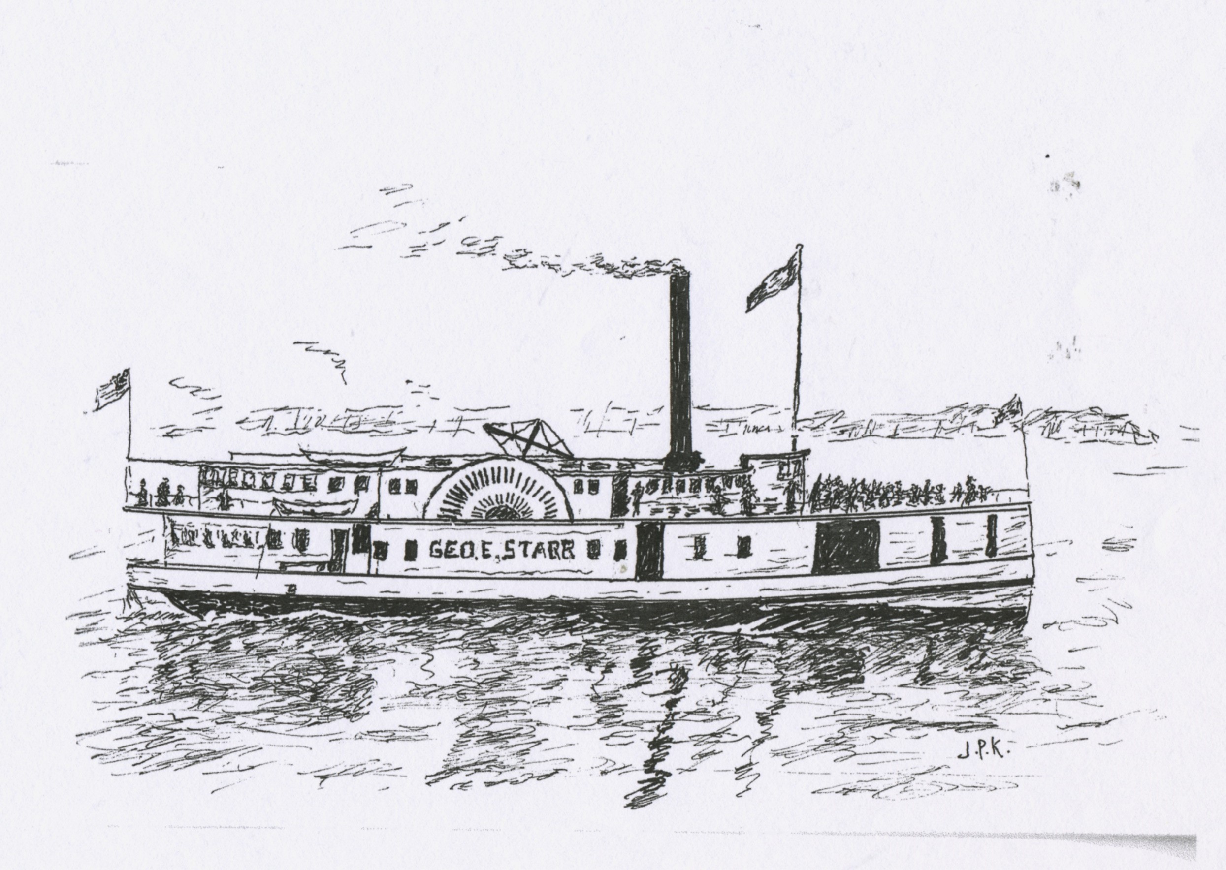 Jimmy in the second week boarded the elegant—if not speedy—side-wheeler George E. Starr for Bellingham Bay. Leaning on the rail absorbing the subdued steely-gray water and mountain scenery, he listened to the swishing paddle wheels and steady thump of the walking beam oscillating over the upper cabin. From inside the main cabin came the singing of early-in-the-day merry makers, the childhood tune familiar: